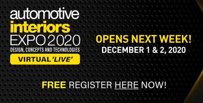 Taking place next Tuesday and Wednesday, December 1 & 2, 2020, Automotive Interiors Virtual ‘Live’ will provide a much-needed platform for discussions on the future of automotive interiors. From ADAS and AV implications for design through to sustainability and new materials, the latest developments in smart surfaces, and the best user experiences and HMI developments, the event will bring together the auto interiors community at a key moment, following a highly disruptive and challenging year.