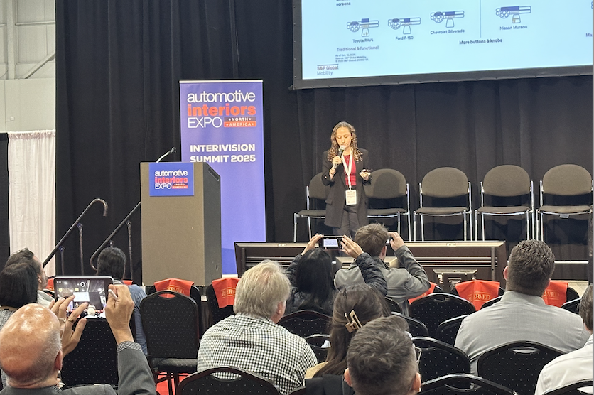 The InteriVision Summit kicked off this morning with Tanya Chantiri, senior research and forecast analyst at S&P Global Mobility, presenting Interiors in numbers: Forecasting trends in the automotive interiors market. She highlighted data-driven insights into future interior trends, market growth and evolving consumer expectations.