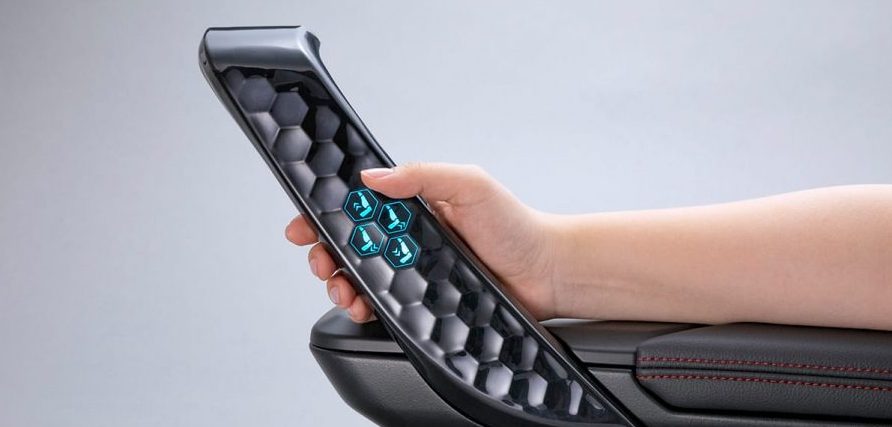 In Level 3 vehicles (conditional driving automation) and above, it is assumed that the driver will take a relaxed posture within a range where they are always ready to take control if the system is unable to execute the task. However, when the driver enters this position the car’s center display and instrument panel will be out of the occupant’s reach. Seats and door trims are ideal places for user interfaces as they allow a driver to effortlessly control the functions from the lean-back position.