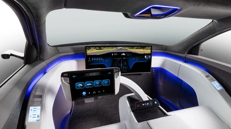 The company’s designers envision an in-vehicle area that eliminates the traditional instrument panel and integrates all key functions into a Smart Cabin seat module. These functions include intelligent surfaces for operating and controlling the vehicle, an active headrest with audio functions, safety systems, seat-integrated climate control, practical storage and charging options.