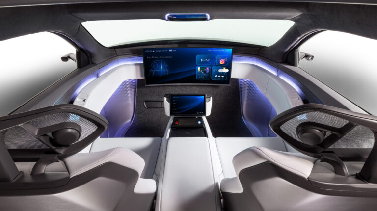 The company’s goal with the EVI and Smart Cabin Seat was to simplify vehicle interiors while retaining expected functionality. The unique module, housing both front seats, an integrated floor console, steer-by-wire input system, HMI, displays, seatbelts, airbags and an HVAC microclimate system, reshapes the vehicle interior.