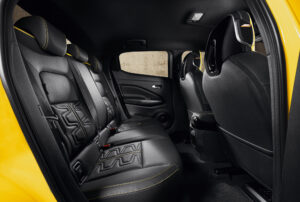 A new N-Sport grade has been introduced, which features distinctive yellow highlights that extend across the top of the instrument panel, framing the central infotainment screen and air vents, along with yellow recycled Alcantara inserts on the seats and quilted patterns and embossed Juke branding.
