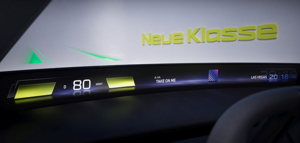 Inside the i Vision Dee, information is displayed via projection across the entire width of the windshield, only becoming recognizable as a display once turned on. Through the advanced head-up display, BMW aims to demonstrate the potential of projection technology. Starting in 2025, the standard-production version of the full width head-up display will be available in BMW’s Neue Klasse of vehicles.