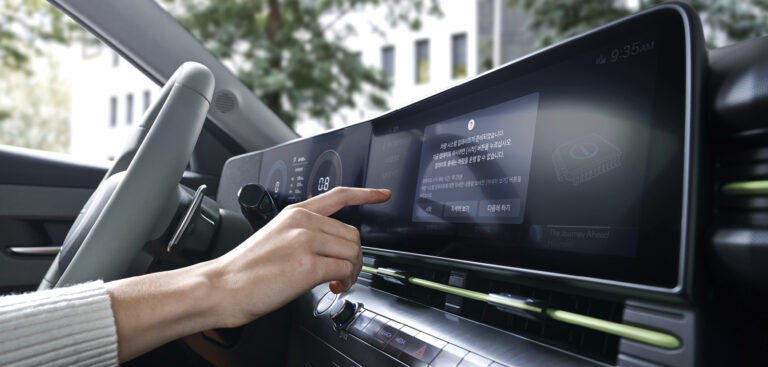 The latest generation of the Hyundai Kona compact SUV features a V-shaped display screen from Continental. The display follows the trend to create more integrated digital surfacing with a two-in-one solution that combines the two screens of the instrument cluster and center information display under one glass panel. Additionally, the new Kona features over-the-air (OTA) software updates for new functions, design and interaction possibilities in the vehicle, which can be managed via the V-shaped display.