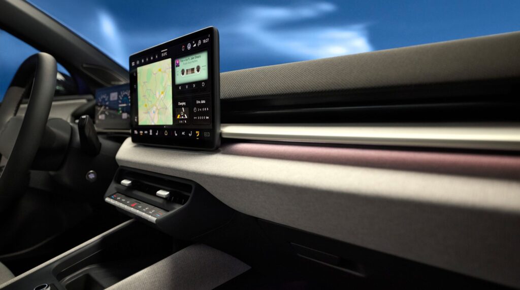 The graphics are high-resolution and precise, and the central display is easily accessible for the front passenger as well. Separate buttons for climate functions and the hazard warning lights are integrated into a strip below the infotainment screen.