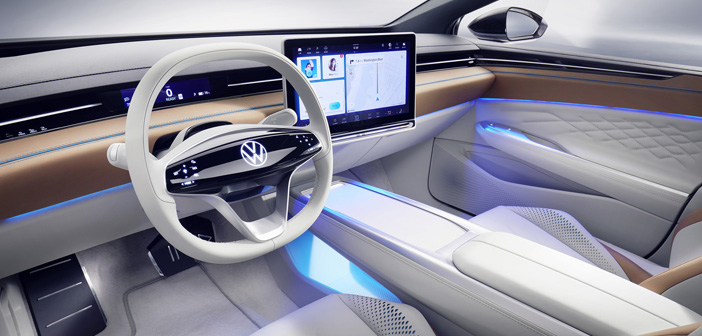 With its fully digital cockpit, the ID Space Vizzion “defines a new status quo in terms of intuitive control”. For the first time, all relevant driving information is shown in an augmented reality head-up-display. Instead of the classic cockpit, there is a mini display containing only basic driving information. All entertainment, comfort and online functions, as well as vehicle settings, are grouped together on a 15.6in touchscreen that appears to hover in mid-air. The driver also receives key information intuitively from the ID Light – an interactive light strip between the A-pillars.