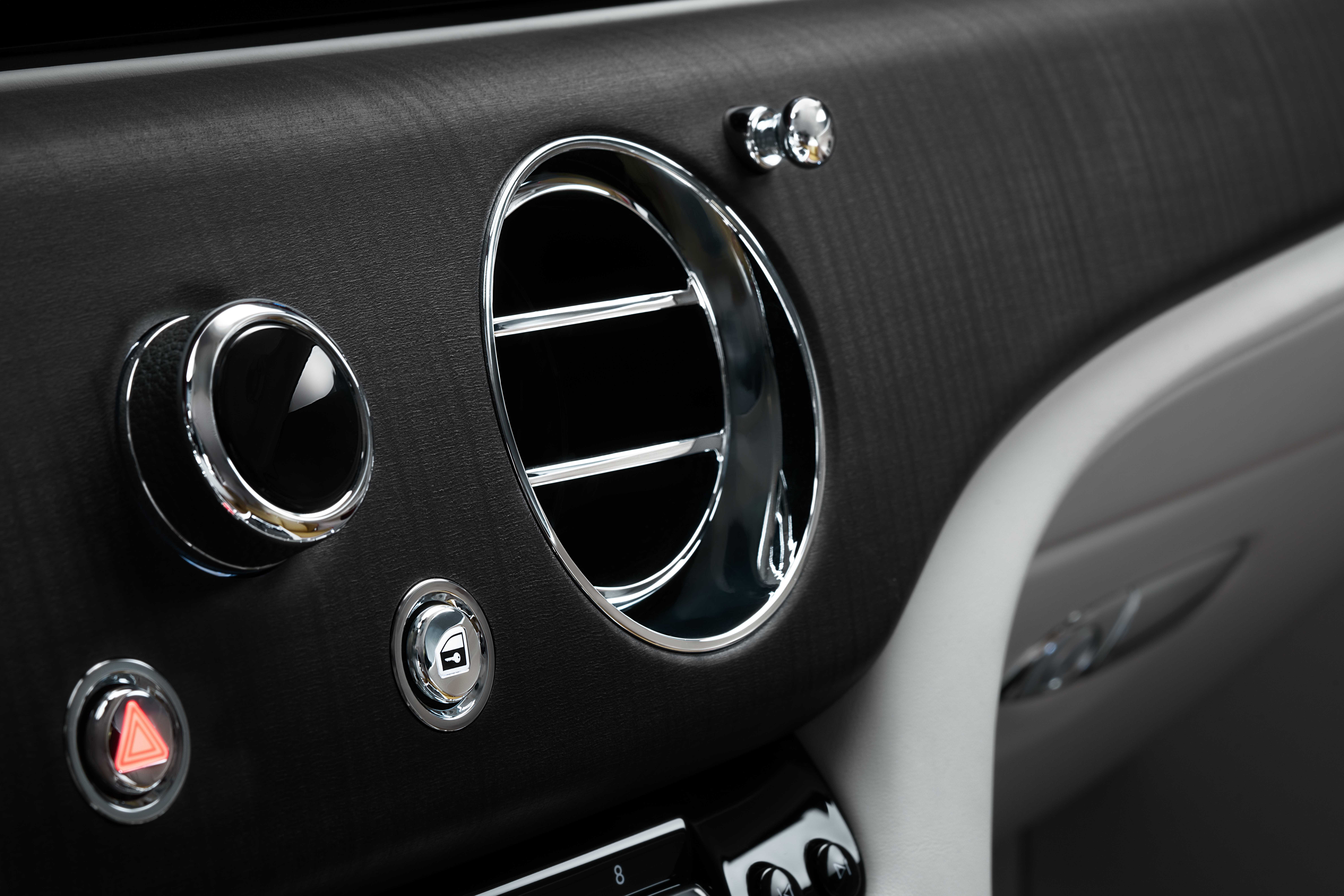 Continuing with the night-time theme, the vehicle features an illuminated fascia that took two years to develop. Surrounding the Spectre nameplate on the passenger side of the dashboard are 5,500 stars that are invisible when the vehicle is turned off.