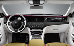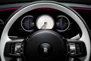 Inspired by British tailoring, Rolls-Royce has introduced a new front seat design with what it describes as ‘near-infinite bespoke possibilities’. The seat’s lapel sections can be upholstered in colors that contrast or match the main base color. Another first for the all-electric model is fully digital and bespoke dials that can be personalized in a customer’s color of choice to match the interior upholstery. The dial’s hands also feature a trail of stars.