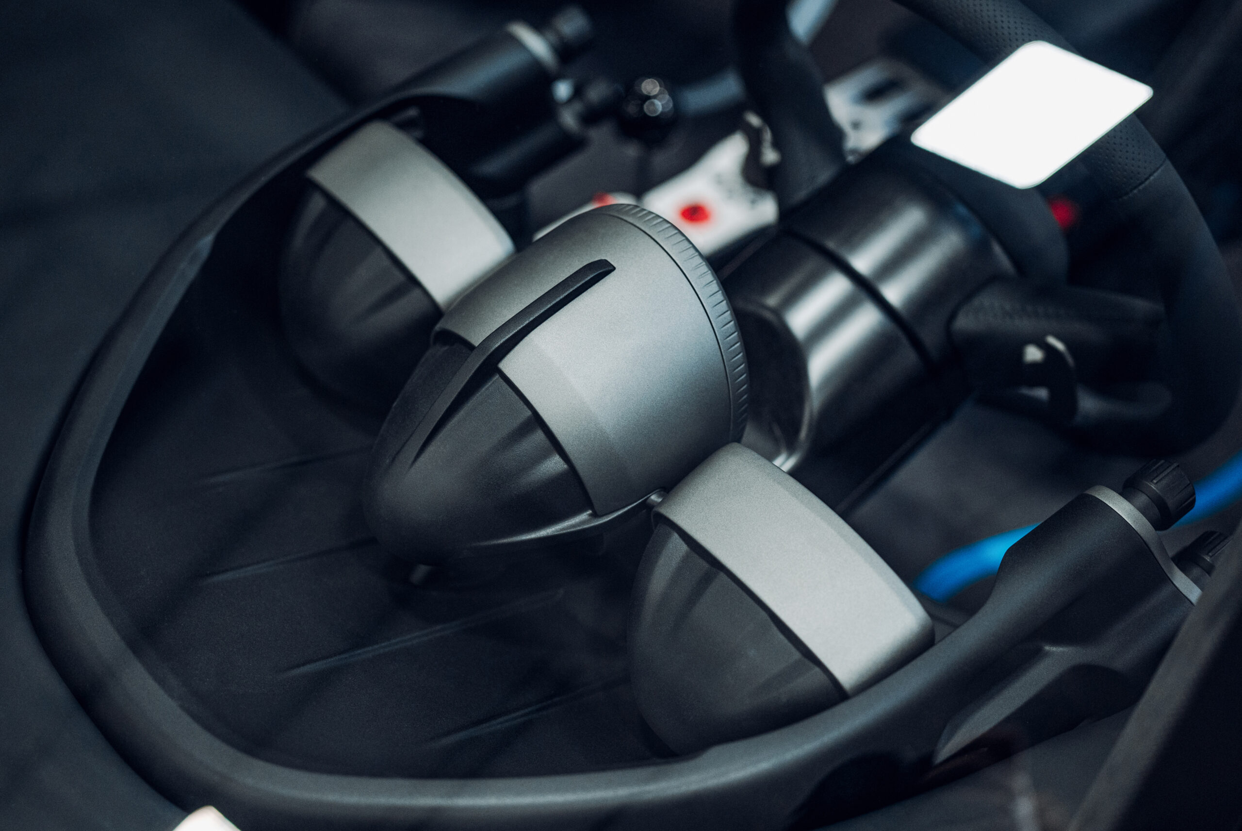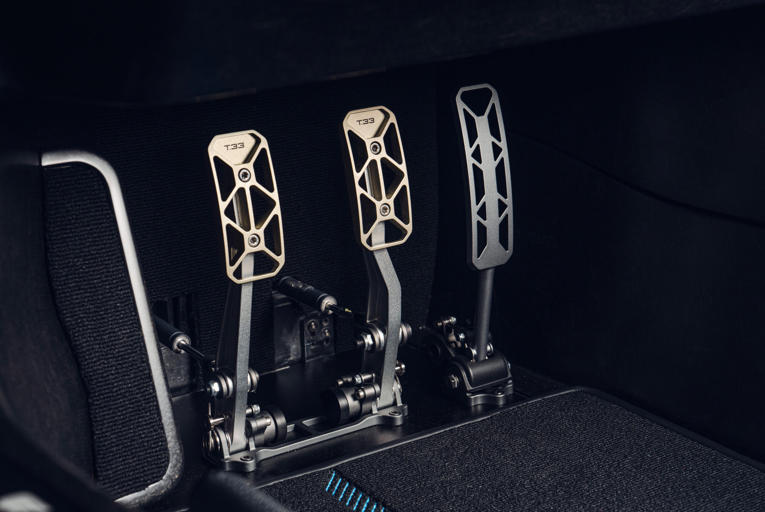 Ergonomic by design, the T.33 Spider’s carbon-fiber steering wheel has been upholstered in leather and combined with optimally weighted pedals, a gear shift lever and switchgear machined from aluminum alloy. Furthermore, the vehicle’s carbon-fiber seats have been trimmed in leather and Alcantara.