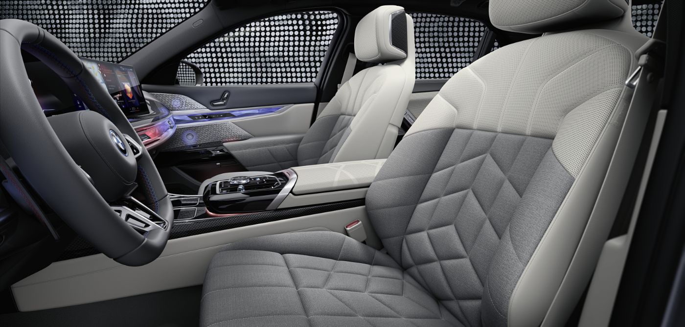 The 7 Series comes as standard with Merino leather trim in a variety of color options, and the company’s latest Veganza synthetic leather is available as a no cost option. The seat materials can also be combined with cashmere wool trim.