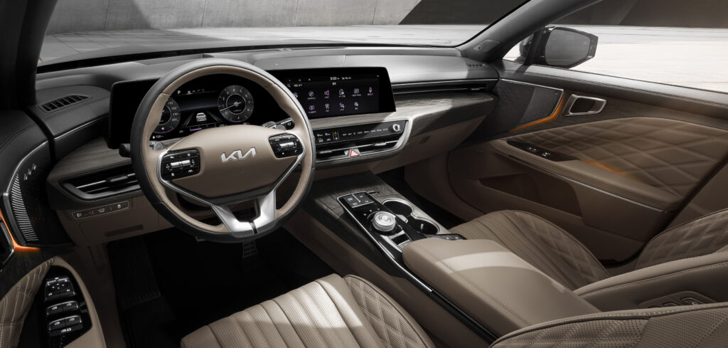 Kia has showcased the interior of its latest K8 premium sports saloon, which it says blends premium luxury with style and unrivaled comfort. The company claims that every element of the K8 interior has been designed with high-end luxury in mind, from the use of detailed wood elements through to the integration of connected technology.