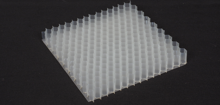 The new material is a simple combination of a lattice structure and plastic film, which controls air vibrations to limit the transmission of wide frequency band noise (500-1,200Hz), such as road and engine noise.