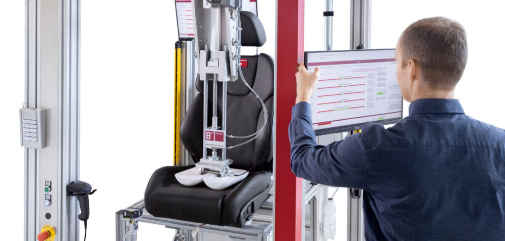 The intelligent test system enables cycle time-optimized, efficient and safe testing of individual seats as well as pairs of seats. It logs results, events and errors and integration of the tester into an existing production line is easily possible.