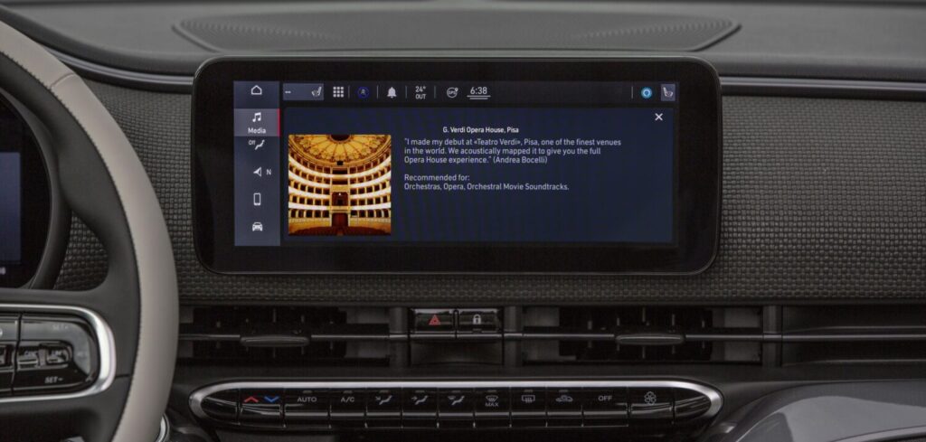 Featuring four venues selected by Bocelli, the Virtual Venues feature is stated to offer listeners a virtual-reality audio experience that changes the acoustic characteristics of the car depending on the chosen location, transporting listeners to unique listening environments. These range from an intimate ‘music room’ setting through a clinical recording studio feel to an acoustic recreation of the Giuseppe Verdi Opera House, Pisa, Italy.