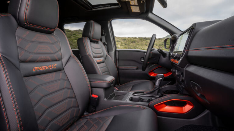 Nissan has introduced several functional revisions, such as a standard telescopic-adjusting steering wheel on all grades and a four-way power passenger seat on the Pro-X/Pro-4X and SL grades. The six-way power driver’s seat now includes two-way power lumbar support on SV grades and higher. A 12.3in touchscreen infotainment system with wireless Android Auto and Apple CarPlay connectivity is also available on SV grades and higher.